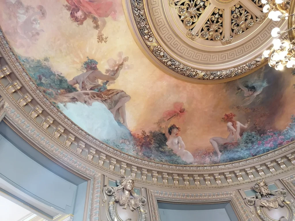 This ceiling of the Salon du Glacier at the Palais Garnier represents a bacchanalia, that is to say an antic religious festival during which people drank a lot.